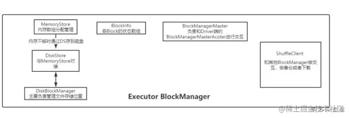 - BlockManager的作用?我理解是负责做RDD的存储,如何存下来给后续任务去使用。 其内部模块图如下: