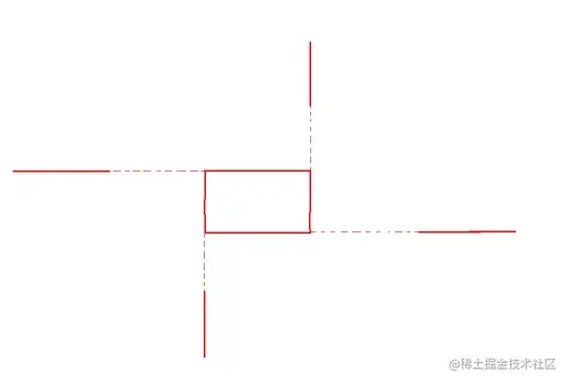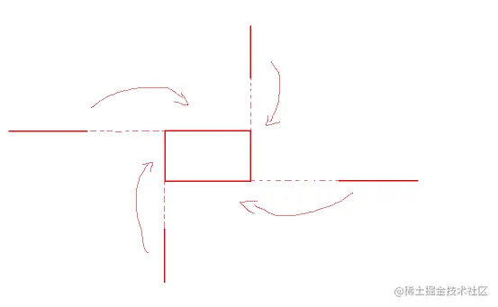那么,来分析一下动画,其实是每条线都是自身的三倍长,中间一段是没有线条的,当鼠标悬浮后线条顺时针移动,自左向右经过中间的空隙最后是线条最靠左的部分停在x轴的0点处,原来div的上边框被移动到了最右侧,如下图