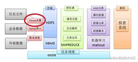 老刘觉得可以这样说在一个完整的离线大数据处理系统中,除了hdfs+mapreduce+hive组成分析系统的核心之外,还需要数据采集、结果数据导出、任务调度等不可或缺的辅助系统,而这些辅助工具在hadoop生态体系中都有便捷的开源框架。