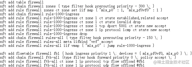 同样创建firewall规则,允许访问虚拟机的icmp和tcp 5001端口,并且把VFrepresentor port和PF port加入到flowtable做offload。