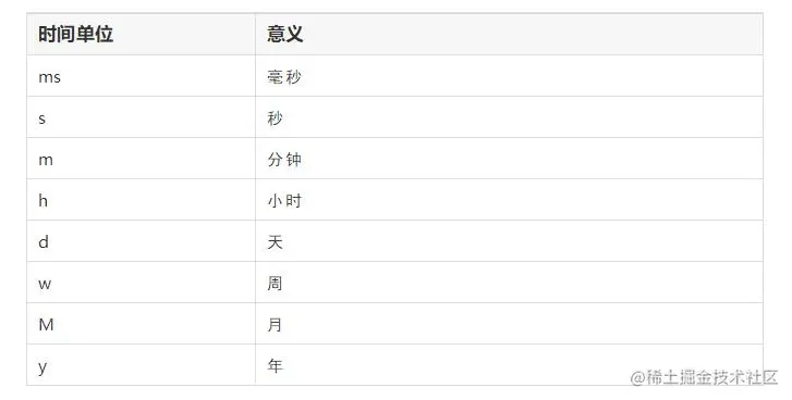 再比如,读取时间可以使用以下单位: