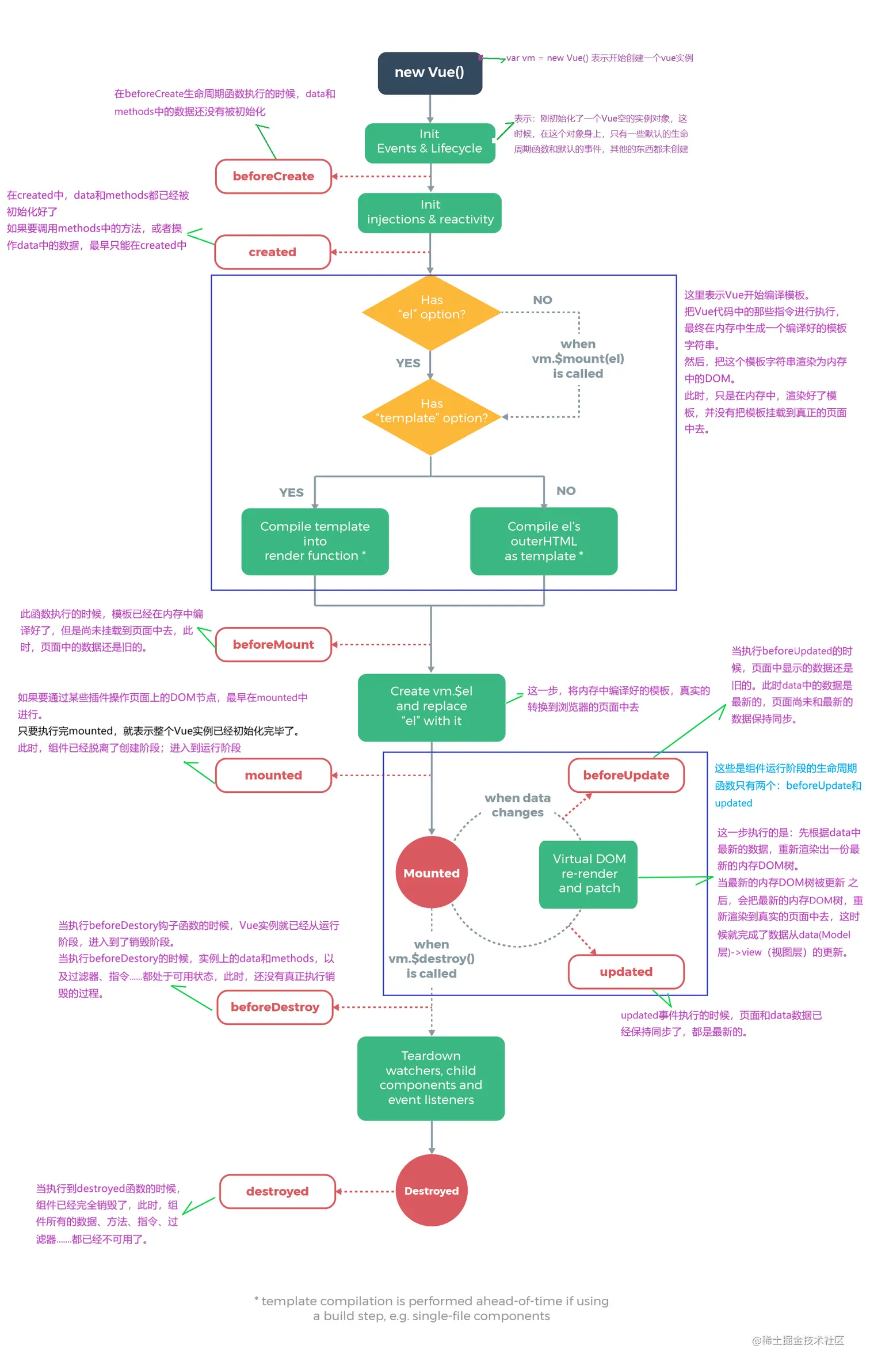- 当有大量静态的内容的时候,这些内容会被当作纯字符推进一个buffer中,即使存在动态的绑定,会通过模板插值嵌入进去,这样会比通过虚拟DOM来渲染的快上很多很多。