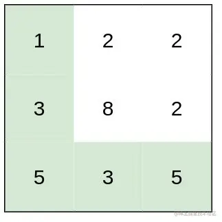 输入:heights = [[1,2,2],[3,8,2],[5,3,5]]
