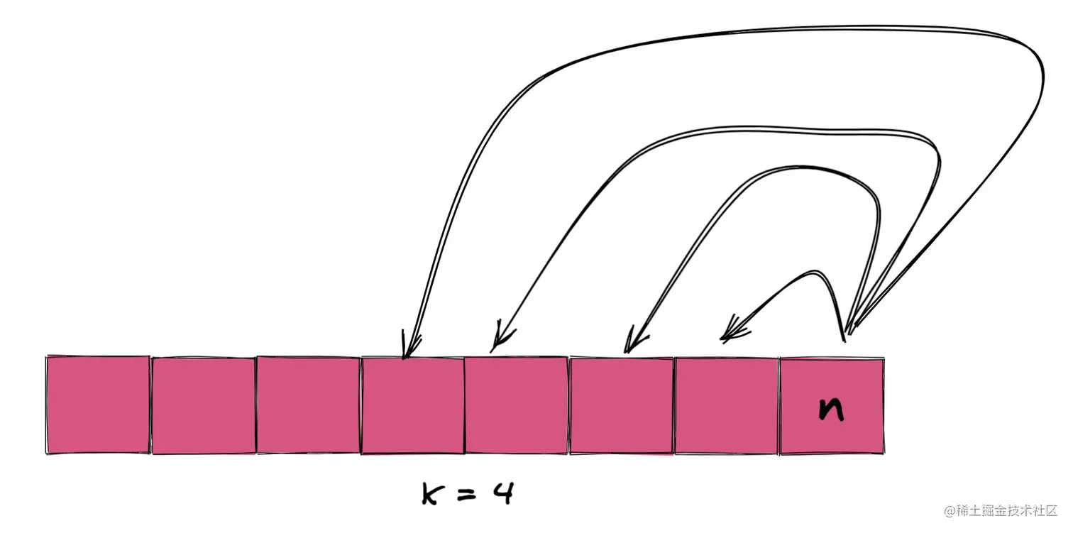 220 场周赛 - 跳跃游戏 VI 这不还是上面爬楼梯换皮么?这次变成了一次能爬 k 级台阶罢了。