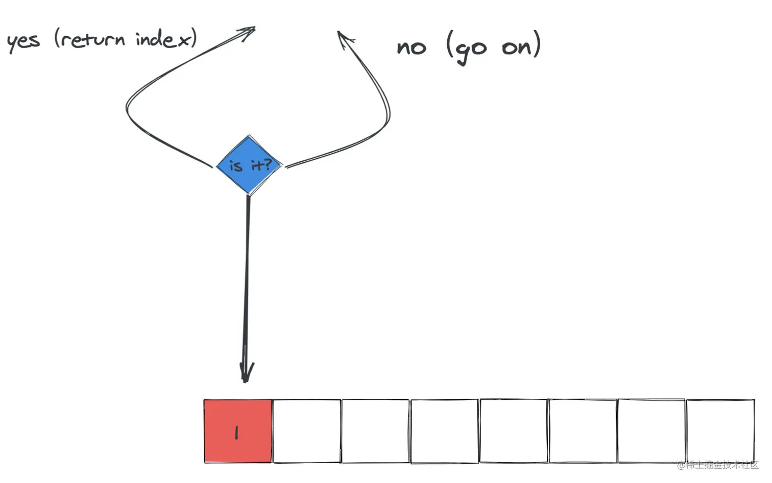 - 在一个数组 nums 中找值为 target 的元素,并返回数组下标,题目保证 nums 中有且仅有一个数等于 target。