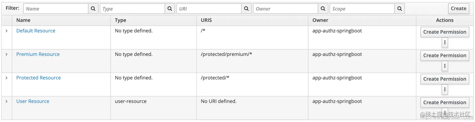 首先我们需要创建一个资源服务器,然后在资源服务器中创建各种资源,最后对各种资源设置一些scope,scope就是跟资源相关的的一些可执行的操作。