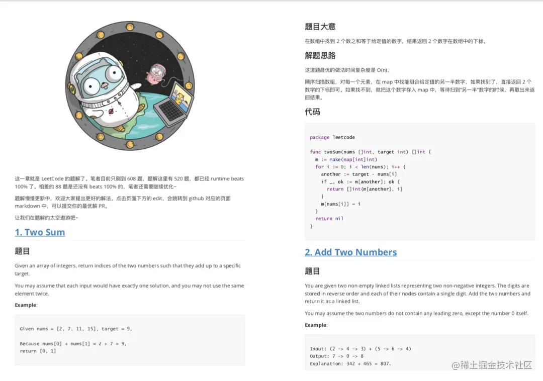 这个 LeetCode 刷题手册是@halfrost(中文名:霜神)刷 LeetCode 时整理出的 520 题,每道题都写了解题思路,并且每题都 runtime beats 100% 了。