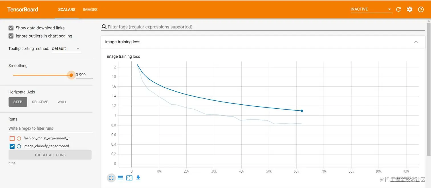 我把训练的图片分类的loss用tensorboard给可视化出来了: