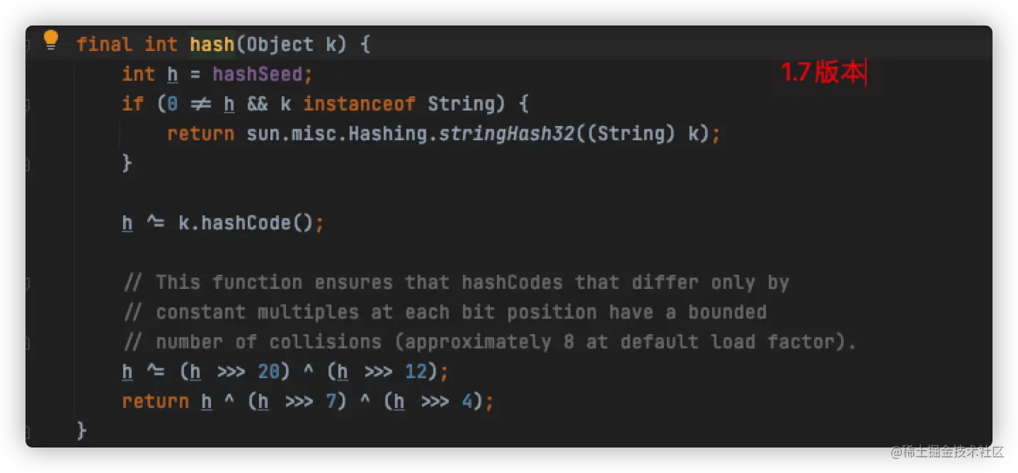 - hash算法:在JDK1.8的实现中。优化了高位运算的算法