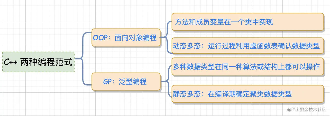 在 C++ 语言里面,我们可用以下方式来简单区分一下 OOP 和 GP :