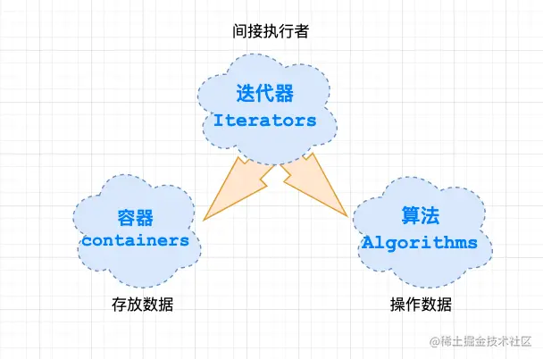 在 STL 编程中,容器和算法是独立设计的,容器里面存的是数据,而算法则是提供了对数据的操作,在算法操作数据的过程中,要用到迭代器,迭代器可以看做是容器和算法中间的桥梁。
