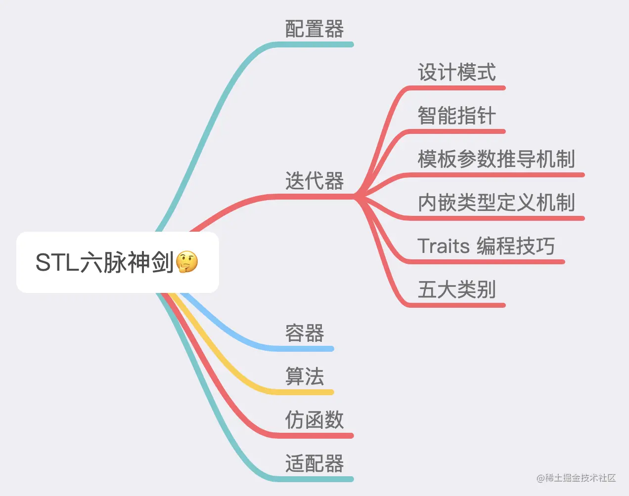 STL 是泛型编程思想的产物,是以泛型编程为指导而产生的。具体来说,STL 中的迭代器将范型算法 (find, count, find_if) 等应用于某个容器中,给算法提供一个访问容器元素的工具,iterator 就扮演着这个重要的角色。