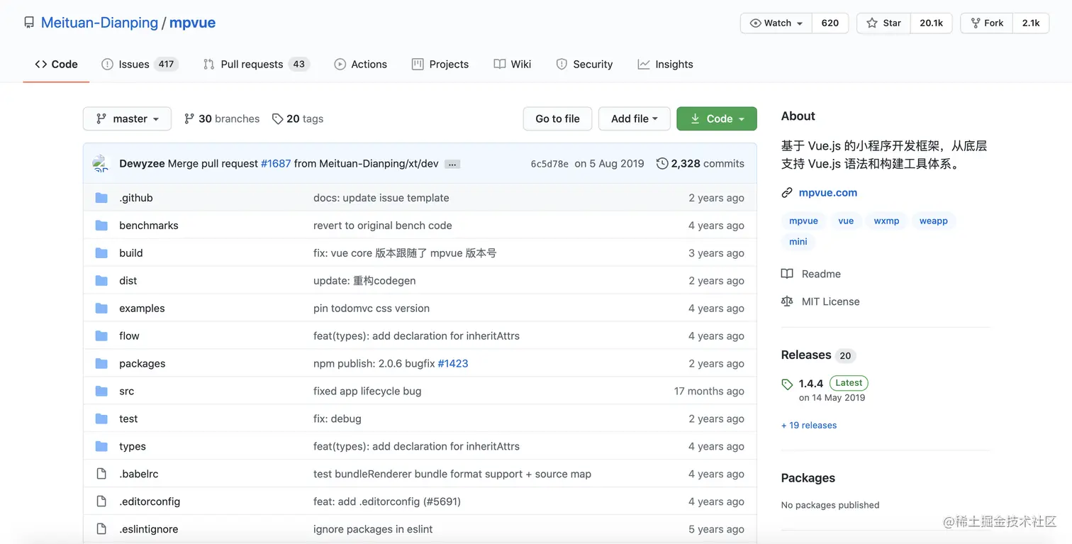 友情提示:mpvue 的 GitHub commit 最近一次 commit 是 17 个月前