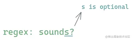 例如,假设我们想匹配单词“sound”和“sounds”,其中“s”是可选的。我们可以使用?量词。