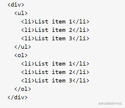 在上面的片段中,div 元素中包含两个列表:一个无序列表,一个有序列表,每个列表都包含三个列表项。这两个列表是相邻兄弟,列表项本身也是相邻兄弟。