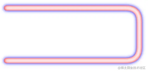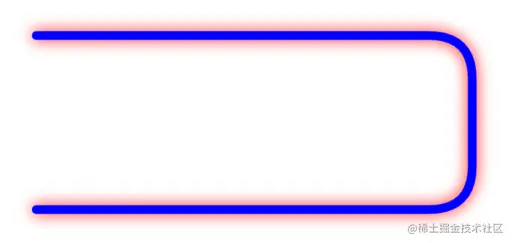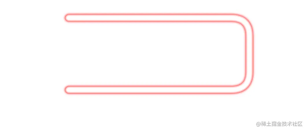 我们知道外发光效果是很容易实现的,直接通过设置阴影效果即可达到。比如我们随便绘制一条线段,加上阴影效果,看起来就是外发光的效果: