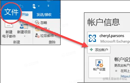 打开 Outlook,然后选择“文件”>“添加帐户”。