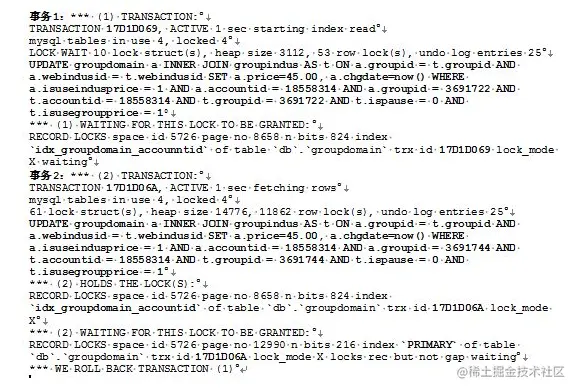 某商业广告系统某天访问量突增,造成系统负载升高以及数据库频繁死锁,死锁语句如下图所示。