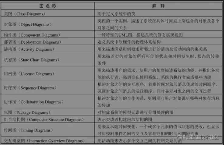 视图是由图组成的,UML2.0中包括了14种图,分结构型图和行为型图。结构是静态的,有类图、对象图、构件图、部署图、包图。行为是动态的,有活动图、状态图、顺序图、通信图、用例图、时序图。每种图是从需求或设计的不同层面来描述模型,以便于所有参与者通过图形化的方式从各个角度了解产品