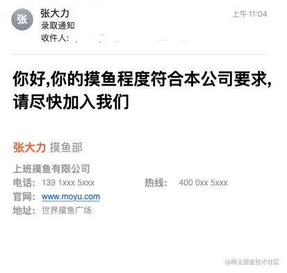 <h1>你好,你的摸鱼程度符合本公司要求,请尽快加入我们</h1>