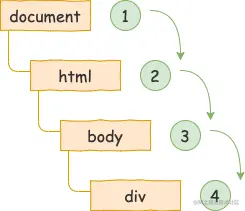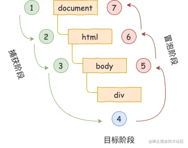 事件冒泡认为事件应该由最具体的元素开始触发,然后层层往父级传播: