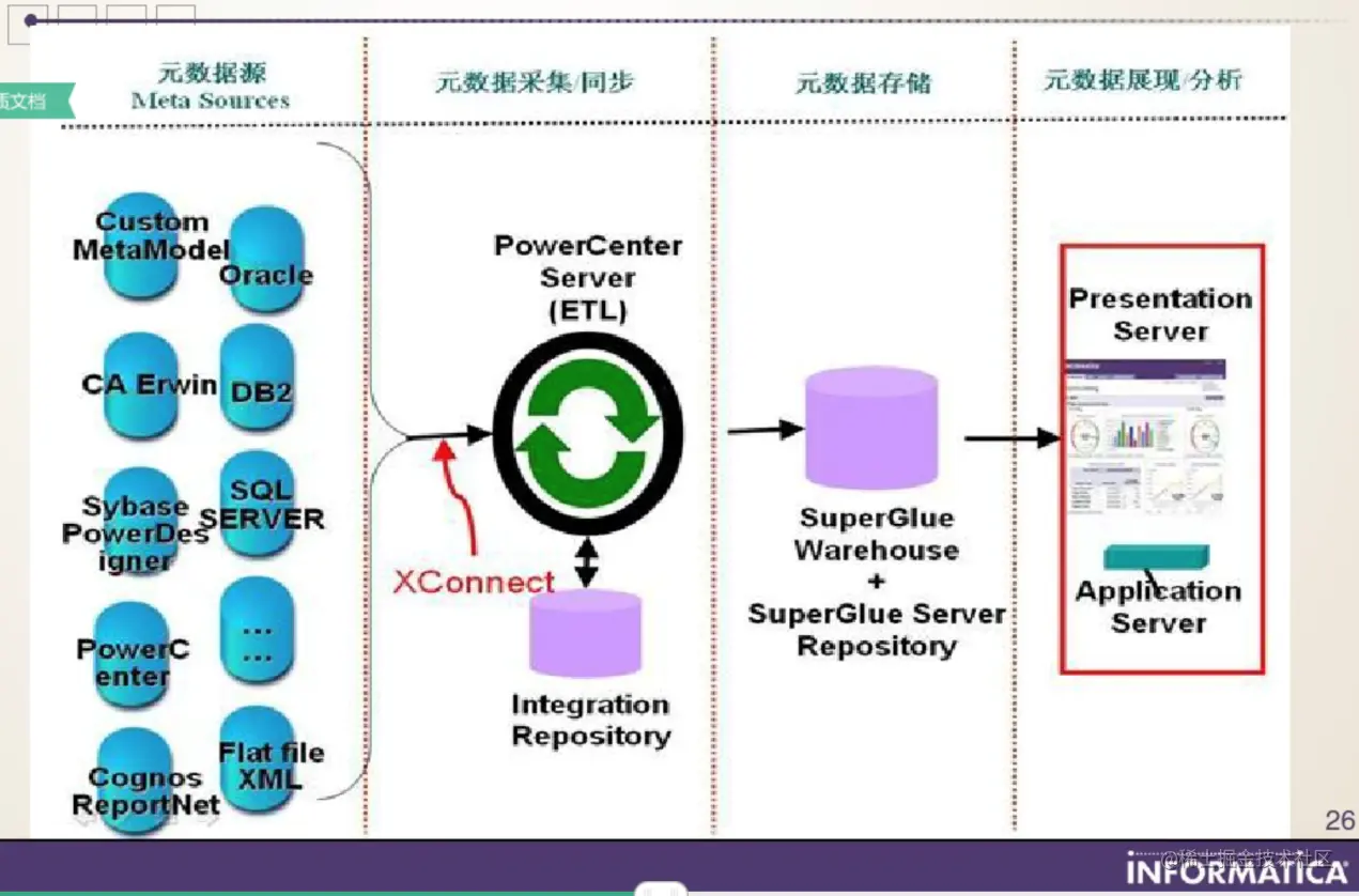 专门的元数据管理工具,对自家产品兼容较好,一旦涉及跨系统管理,就不尽如人意了。从国内的实际应用来看,DAG的MetaCenter这一工具使用最多,目前所看到的在电信、金融领域建设的元数据管理项目基本上都是应用了这一产品。