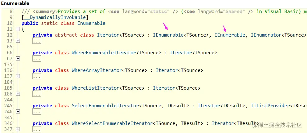 .NET 框架中最常见的扩展方法包括 Linq 标准的查询操作,这类扩展方法极大的扩展了System.Collections.IEnumerable 和 System.Collections.Generic.IEnumerable<T> 的查询能力,如下图:
