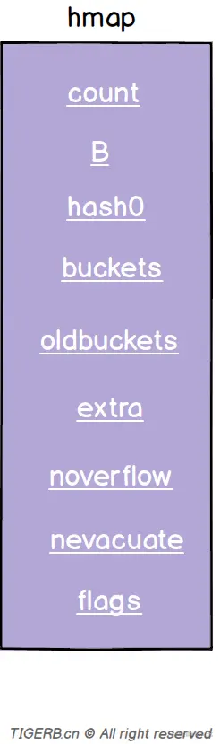 hmap的结构其实刚开始看起来其实还是比较复杂的,有不少的字段,具体字段如下图所示: