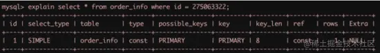 这里简单介绍下其使用方式,通过在所执行的 SQL 前加上 explain 就可以来分析当前 SQL 的执行计划: