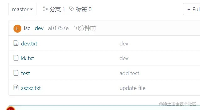 所以我们需要进行分支合并操作,将develop分支的内容合并到主分支