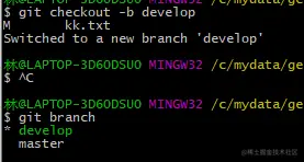 当我们切到 master分支查看日志后,develop分支修改的内容并没有显示到master分支上