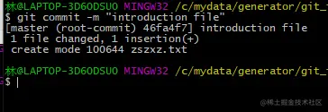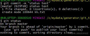 提交文件后会显示一个文件已经提交,工作区很干净;