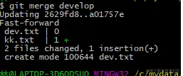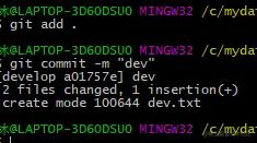 我们现在develop 分支创建文件 dev.txt,并添加至暂存区,提交文件