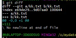 对kk.txt 文件添加 内容使用 查看差异命令可以显示出 文件的变动