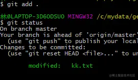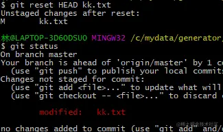 当我们对kk文件进行修改并且添加至暂存区,未提交;