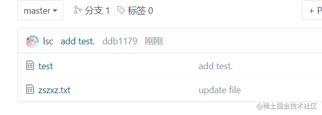 提交后,默认会创建一个分支名未master的主分支;