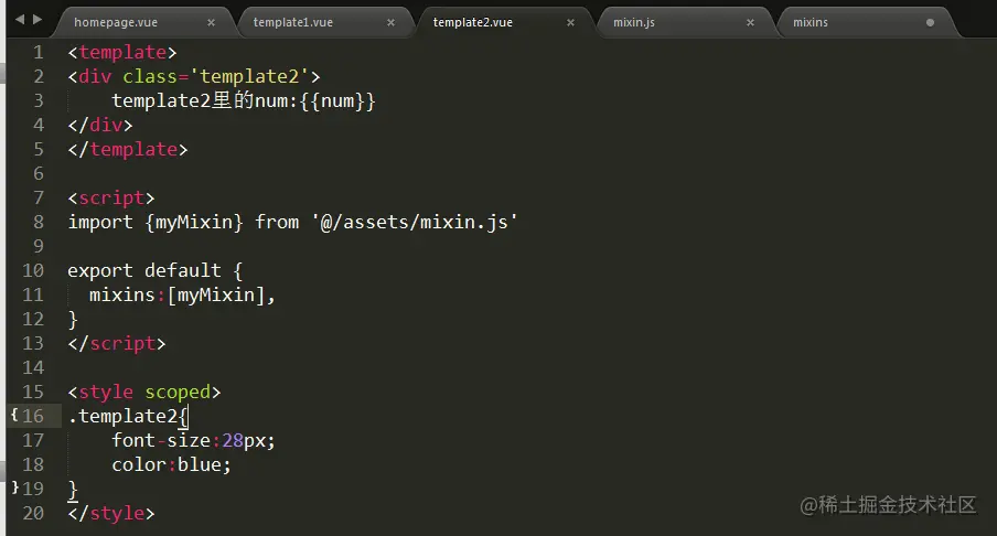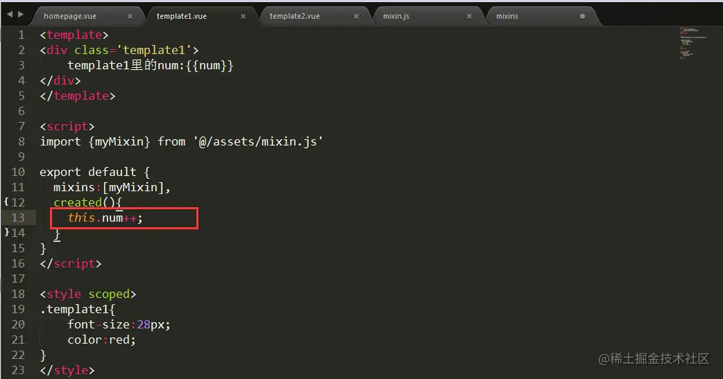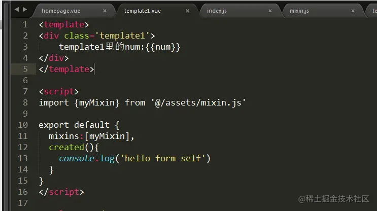 我在组件1里改变了num里面的值,组件2中的num值还是混入对象里的初始值,也就是说我在组件一中对参数num进行操作并不影响,组件二中的num,这就互不干涉👌