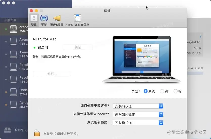 Paragon Software的Microsoft NTFS for Mac在启动时自动安装支持的卷,因此每次重新启动操作系统或打开计算机电源时都不必担心。但是,可以在程序界面中随时禁用此功能。