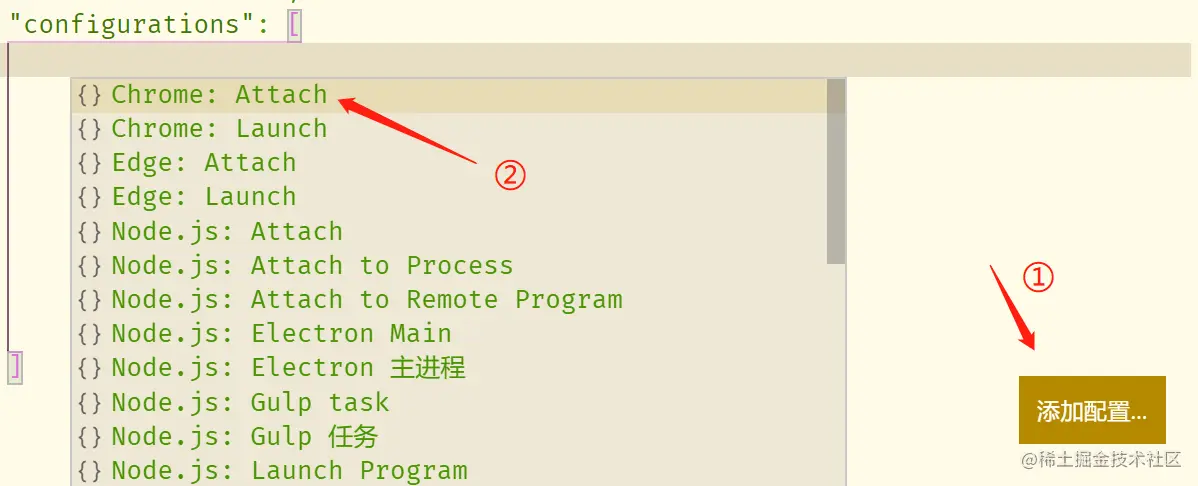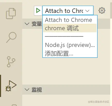 可以看到有两个选项,一个是调试 js 的,一个是调试 ts 的。我们选第一个。
