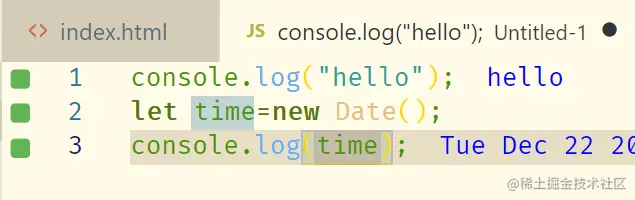 你会发现,代码的运行是实时的。左边的绿色方块代表语句被成功执行,如果执行不成功,会变成红色。