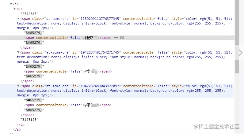 需求描述: quill富文本,插入@人,插入的内容不可编辑,必要属性(id,class)不能丢失用来判断回显。