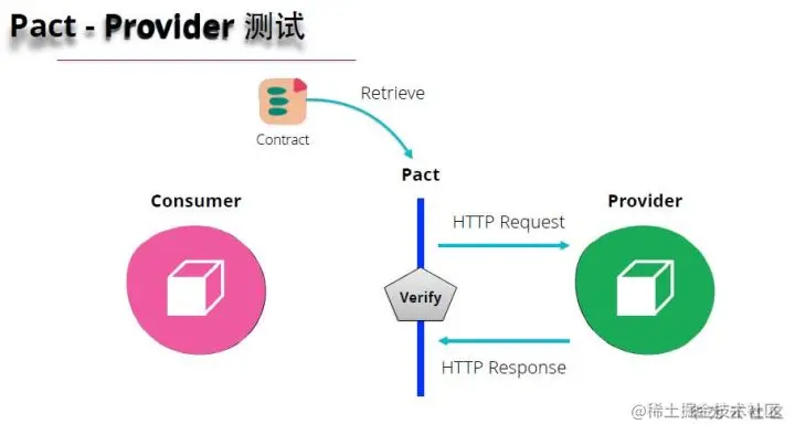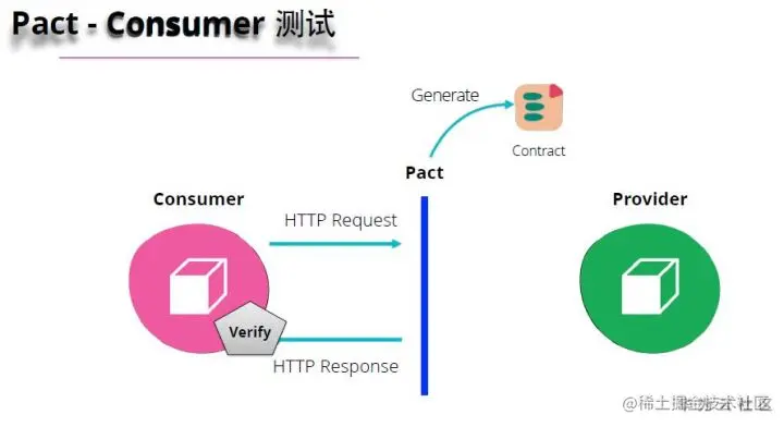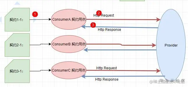 Provider服务的测试环境,则需要根据和Consumer签署的契约文件生成的契约测试用例进行测试,通过测试契约用例验证自己提供的接口是否满足消费者需要,接口是否有变更。一旦接口发生变更,契约测试用例会执行失败。