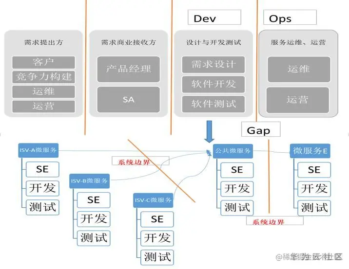 接着上一篇的图,我们简单画下一个系统应用的内部服务的调用关系:交付一个大的系统可能涉及到多家ISV进行集成,每家ISV自己又存在前端、网关、后端等多个微服务,且各自ISV或者服务均存在自己的SE、开发和测试人员,都有自己相对独立的版本演进,服务之间存在调用关系。