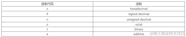 详细的进制代码如下,可以分别到切换16进制、有符号数字、无符号、八进制、二进制、地址值等: