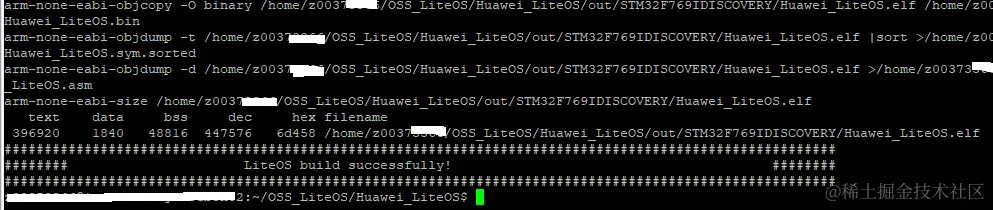 有些开发场景是,在Linux环境上开发、编译LiteOS工程,但是想使用LiteOS Studio在Windows环境进行烧录和调测。对于这种跨平台进行编译调测,LiteOS Studio是支持的。我们在Linux上编译成功: