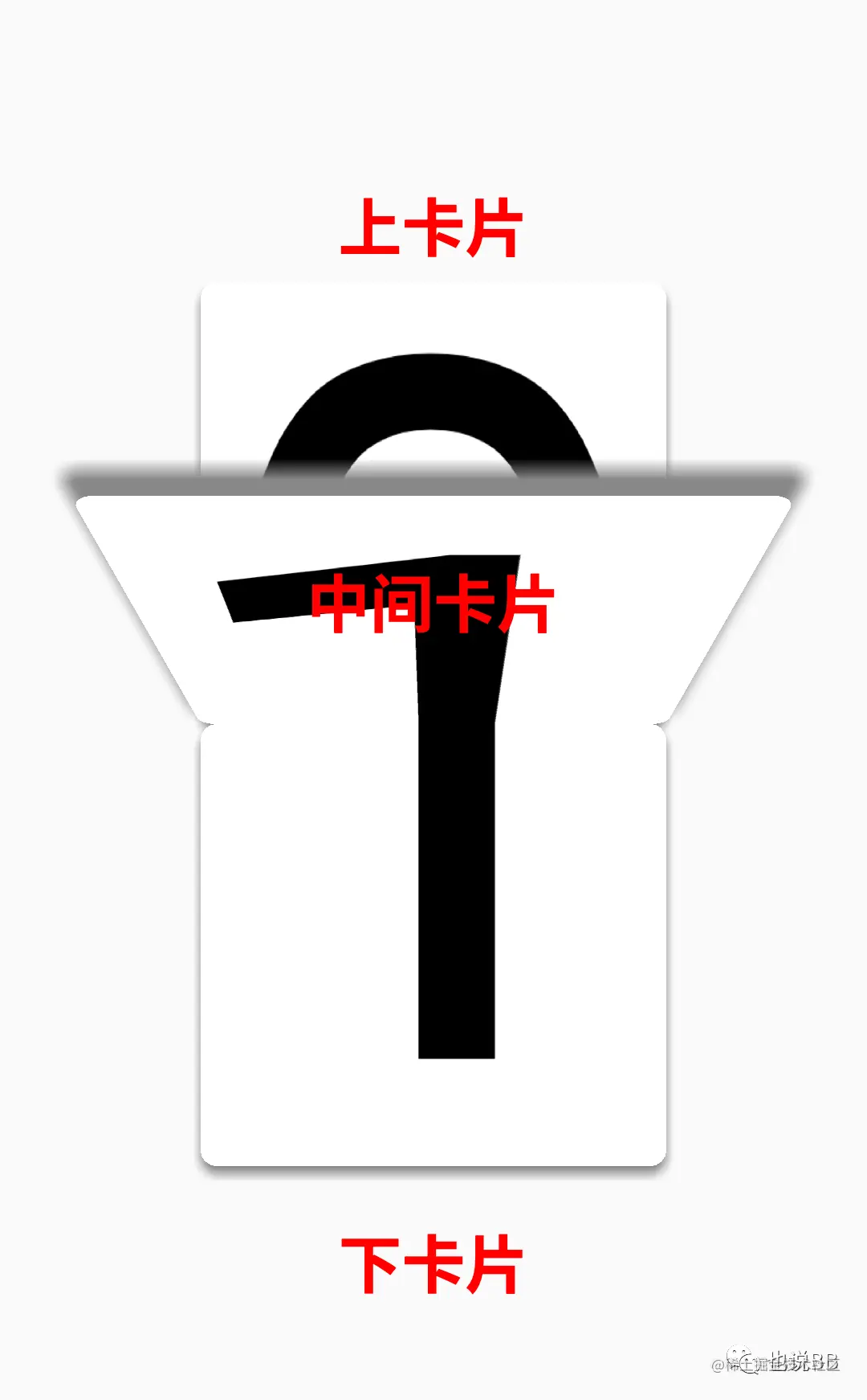 卡片翻转过程中,最多同一时刻出现3个卡片,故只需要按位置关系定义上中下三个卡片,中间的卡片负责翻转。