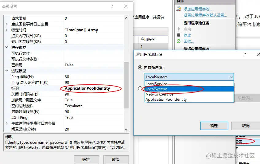 .net core 读写文件没有权限导致报错问题 风灵叶心 2020-12-22 133 阅读1分钟 实际项目中,.net core 项目是发布以后,通过IIS部署的。 对于.NET Framework 项目可以通过配置应用程序清单文件,使程序具有管理员权限(具体配置可以百度), 而.NET CORE则因为跨平台考虑,默认不能添加,因此这里采用修改部署的网站应用程序池,实现了管理员权限,成功完成了对C盘文件的读写! 具体如图所示。