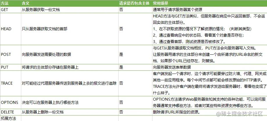 请求的起始行以方法作为开始,方法用来告知服务器需要做些什么。