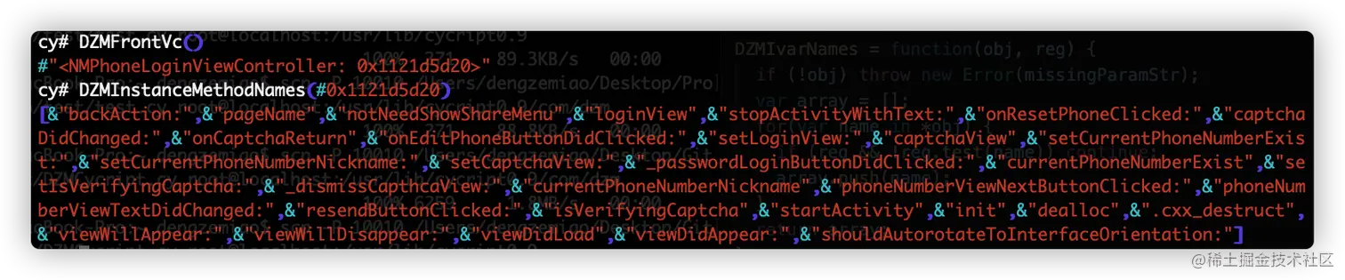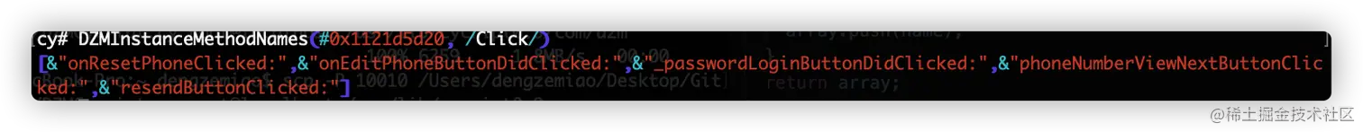 四、DZMInstanceMethodNames(className, reg) 测试:获取指定对象里面有哪些对象方法,这样我们就可以拿到任何对象里面的方法,这样不就可以随便手动调用了
