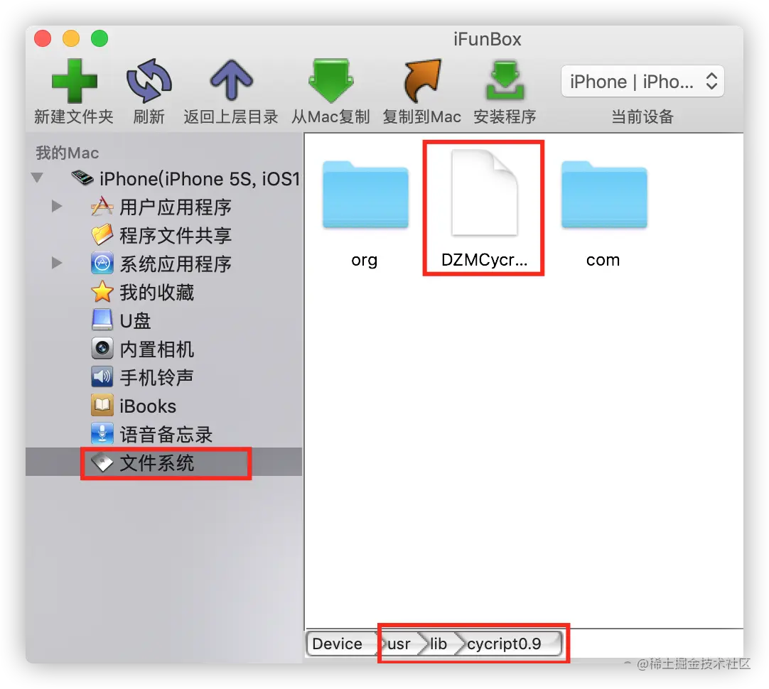 2、通过 手机终端命令 或者 iFunBox 导入到手机端的 /usr/lib/cycript0.9 里面,可以看 上一篇文章 怎么使用 .cy 脚本文件的。